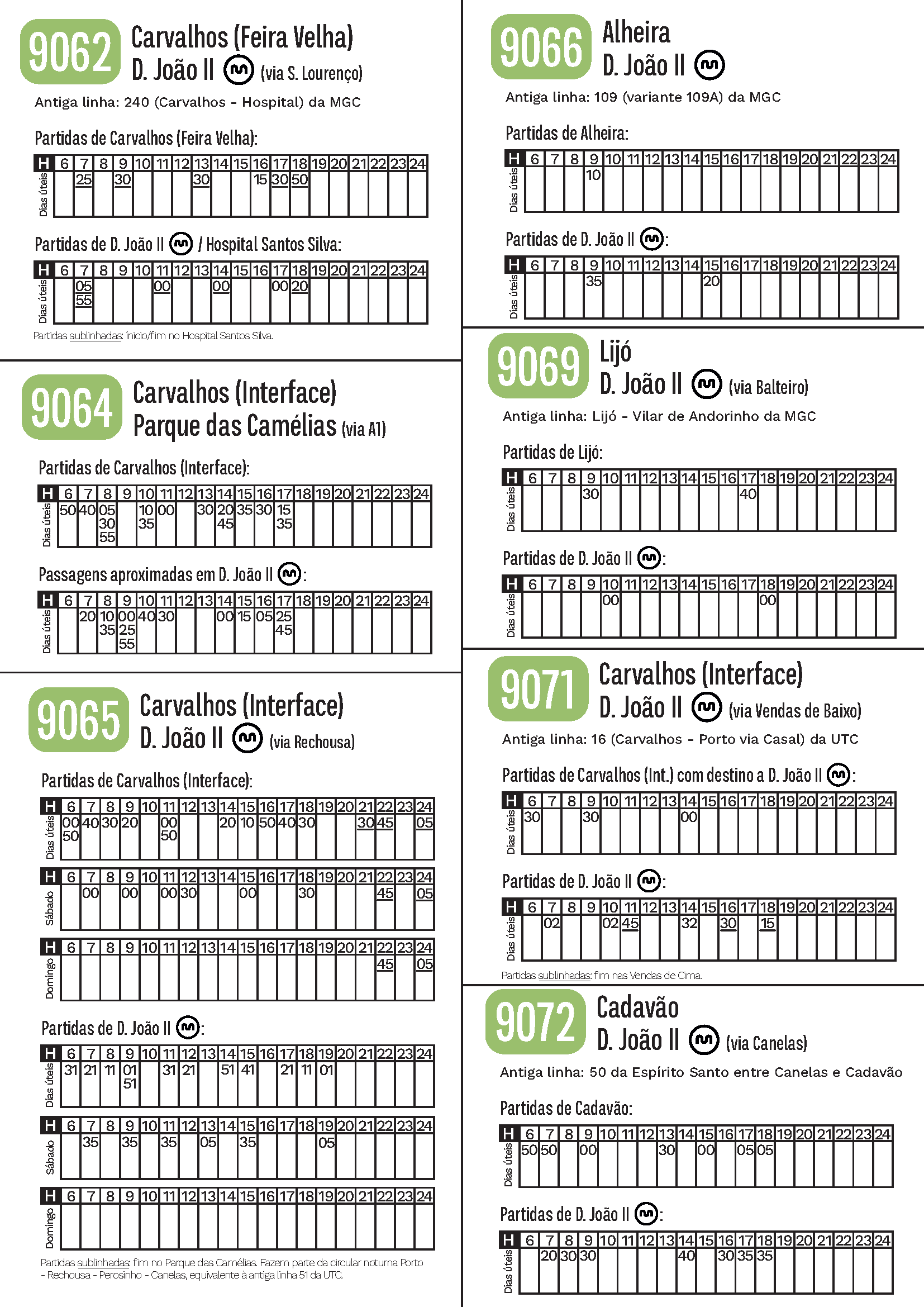 De fora ficaram algumas linhas cujos horários nunca tinham sido publicados, por serem linhas novas ou terem sido alteradas face à oferta a priori. Sempre que possível foram também adicionadas notas relevantes como: a equivalência com as linhas dos antigos operadores privados; se as linhas tinham reforço; entre outros.
