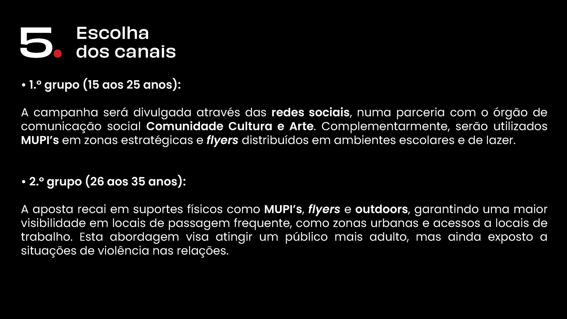A apresentação final do projeto também foi pensada ao pormenor, de forma a reforçar a mensagem principal da campanha. Embora, numa fase inicial, tivéssemos considerado formatos menos convencionais, como rádio e televisão, o tempo disponível acabou por limitar a execução dessas ideias.