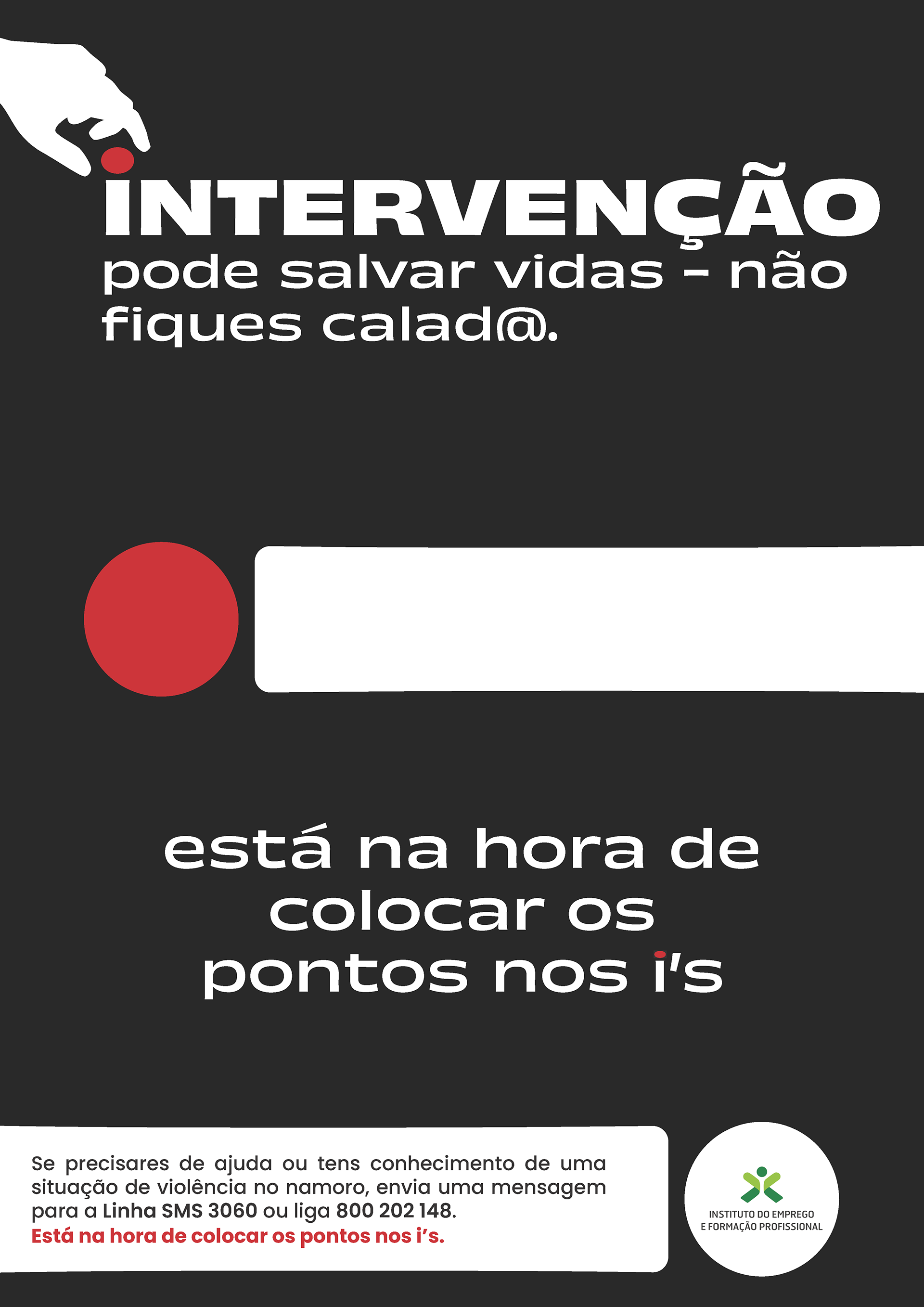 Foram criados cinco cartazes distintos, cada um com uma palavra iniciada por “i” que serve como apelo à ação, incentivando quem os lê a agir contra este tipo de violência.